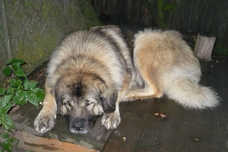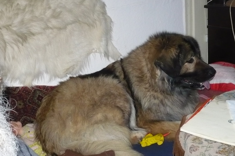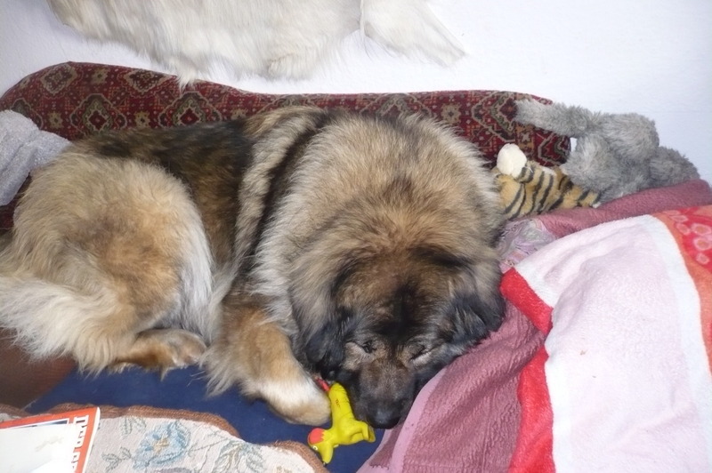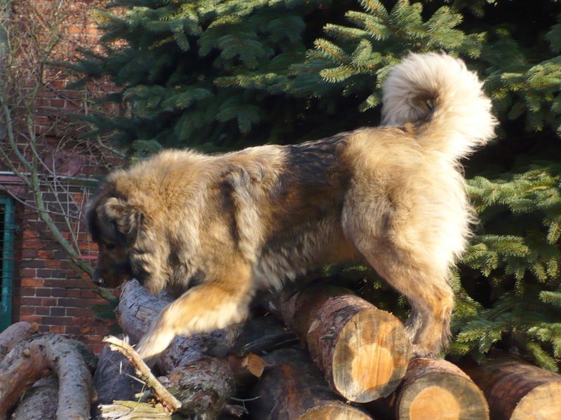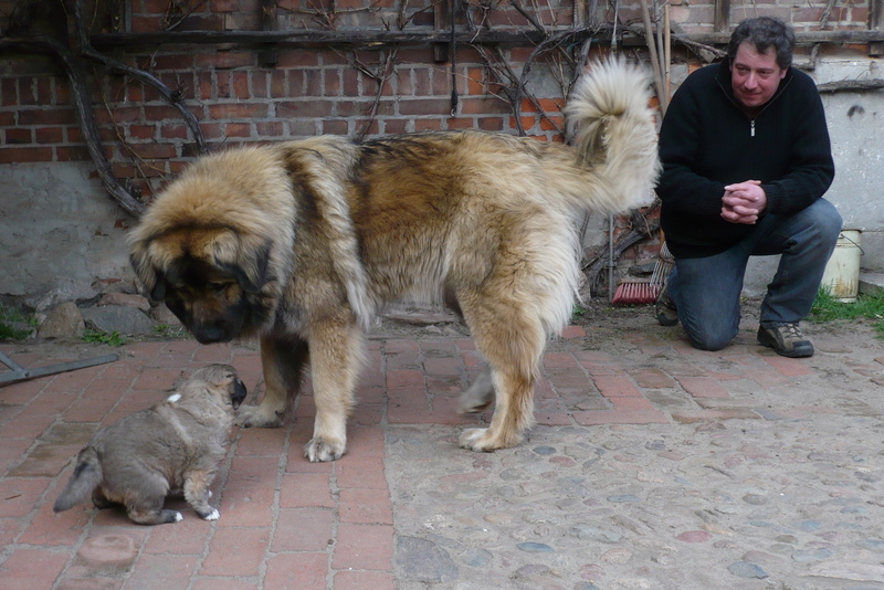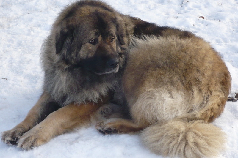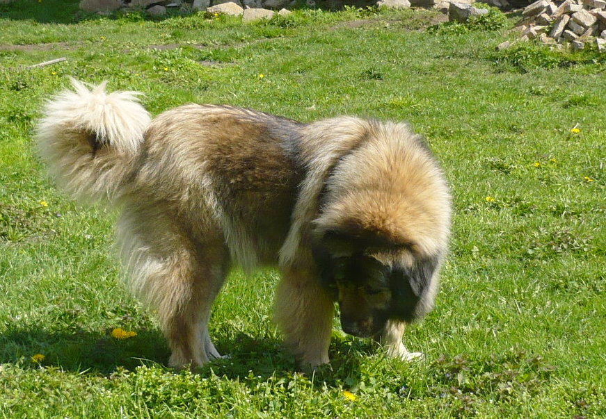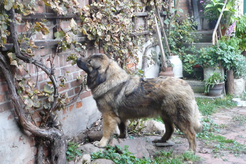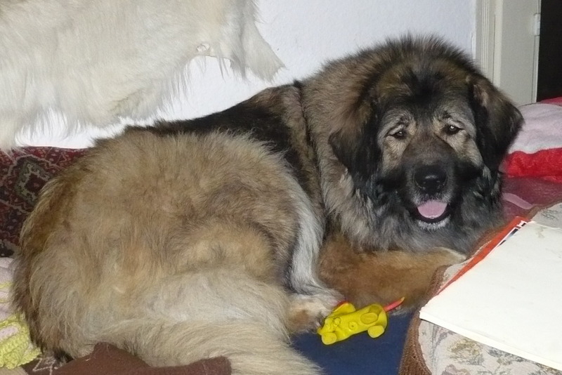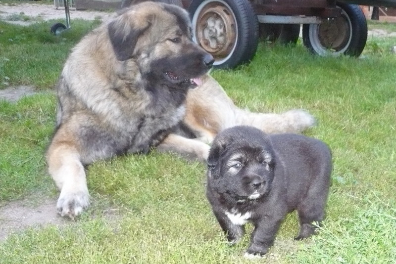 Nana Natasha, unser goldiges Einzelkind, wurde geboren am 17.5.2010 als Tochter von Helena Hekate von der Rudeljahne und Fenix Sejtanova Smecka. Nana hatte einen Bruder, Helena trug 2 Welpen im Bauch. Nach erfolgreicher Geburt ihres ersten Welpen Nana, geriet die Geburt ins Stocken. Ein zweiter sehr großer Welpe lag quer in beiden Gebärmutterhörnchen und fand so den Weg in die Welt nicht. Mit dem sodann erfolgten Kaiserschnitt konnte er leider nur noch tot auf die Welt geholt werden. So blieb Nana Helenas einziger Welpe - und sie war wunderschön. Viele wollten Nana haben, doch wir konnten uns von dem kleinen Plagegeist nicht trennen. So blieb sie bei uns und bereichert nun unseren Kaukasenhof. Nana wurde auf HD geröngt, mit dem Ergebnis HD-A=frei und ED-frei. Nach erfolgreicher Ausstellung mit vorzüglichen Ergebnissen, haben wir Nana am 20.Mai 2013 kören lassen. Sie hat den Wesenstest bestanden und wurde für 3 Jahre zur Zucht zugelassen. Mit Palas di Ca' Bastiani hat Nana ihren ersten Wurf, unseren V-Wurf am 29.8.2015 mit 4 Welpen, 1Hündin und 3 Rüden gebracht. Nachgekört wurde Nana am 31.Juli 2016, nun bis zur Zuchtaltersgrenze am 17.Mai 2018. Nanas 2. Wurf, unser Y-Wurf erblickte am 9.4.2017 mit 5 Welpen, 2 Rüden und 3 Hündinnen, das Licht der Welt. Vater der Welpen ist unser Championrüde Dschutschi, Dombay-Ulgen Dugur-Luchat.