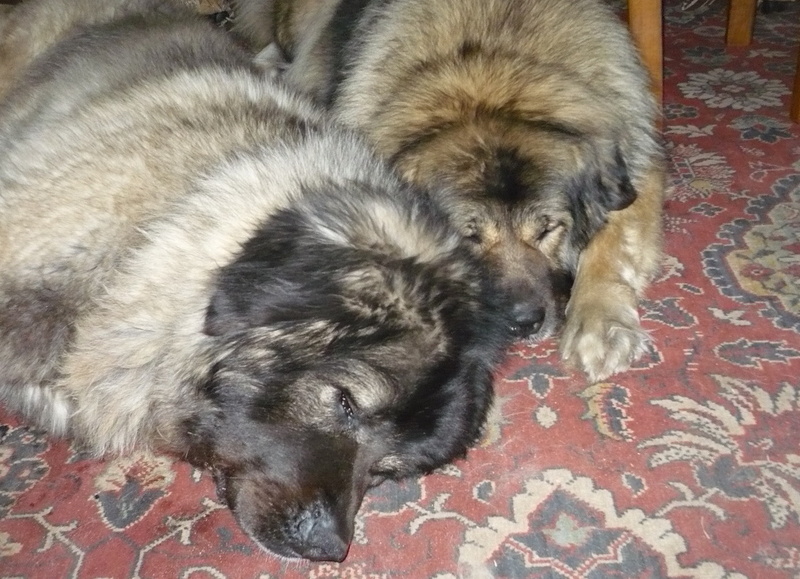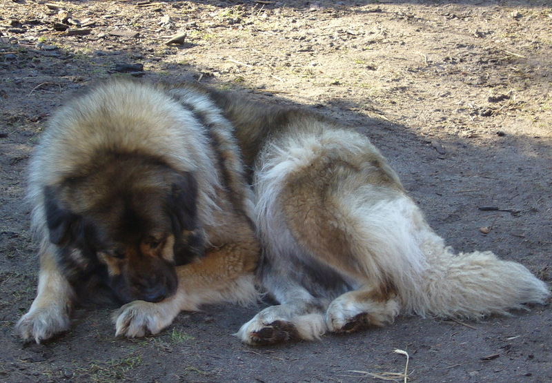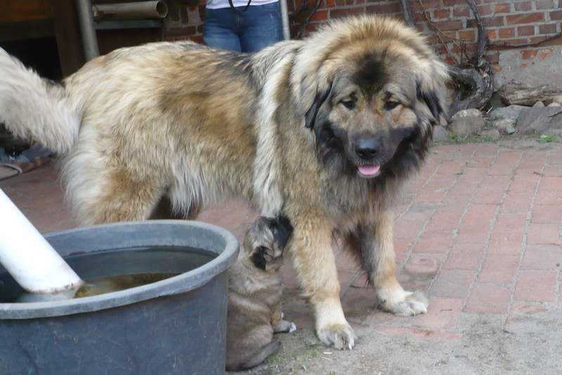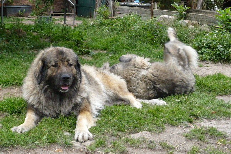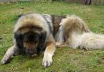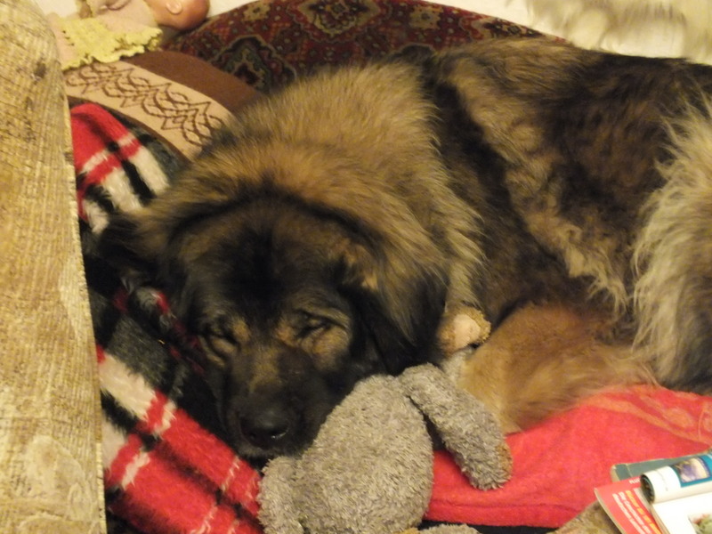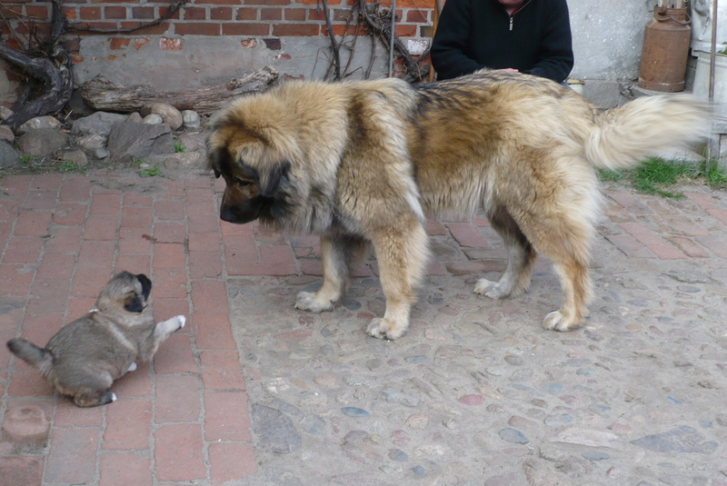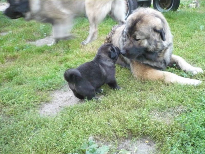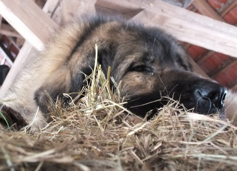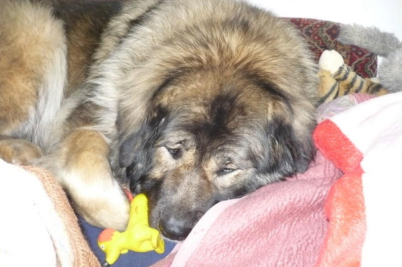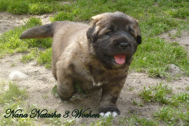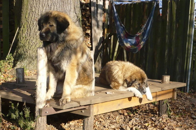 Nana Natasha, unser goldiges Einzelkind, wurde geboren am 17.5.2010 als Tochter von Helena Hekate von der Rudeljahne und Fenix Sejtanova Smecka. Nana hatte einen Bruder, Helena trug 2 Welpen im Bauch. Nach erfolgreicher Geburt ihres ersten Welpen Nana, geriet die Geburt ins Stocken. Ein zweiter sehr großer Welpe lag quer in beiden Gebärmutterhörnchen und fand so den Weg in die Welt nicht. Mit dem sodann erfolgten Kaiserschnitt konnte er leider nur noch tot auf die Welt geholt werden. So blieb Nana Helenas einziger Welpe - und sie war wunderschön. Viele wollten Nana haben, doch wir konnten uns von dem kleinen Plagegeist nicht trennen. So blieb sie bei uns und bereichert nun unseren Kaukasenhof. Nana wurde auf HD geröngt, mit dem Ergebnis HD-A=frei und ED-frei. Nach erfolgreicher Ausstellung mit vorzüglichen Ergebnissen, haben wir Nana am 20.Mai 2013 kören lassen. Sie hat den Wesenstest bestanden und wurde für 3 Jahre zur Zucht zugelassen. Mit Palas di Ca' Bastiani hat Nana ihren ersten Wurf, unseren V-Wurf am 29.8.2015 mit 4 Welpen, 1Hündin und 3 Rüden gebracht. Nachgekört wurde Nana am 31.Juli 2016, nun bis zur Zuchtaltersgrenze am 17.Mai 2018. Nanas 2. Wurf, unser Y-Wurf erblickte am 9.4.2017 mit 5 Welpen, 2 Rüden und 3 Hündinnen, das Licht der Welt. Vater der Welpen ist unser Championrüde Dschutschi, Dombay-Ulgen Dugur-Luchat.