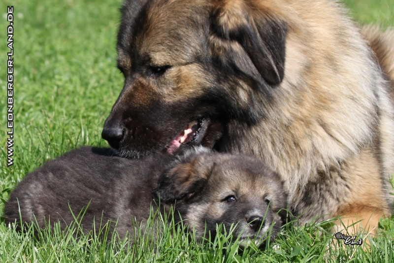 September 2011, Nana ist ganz liebes Kindermädchen beim P-Wurf, Mutter Kleopata.