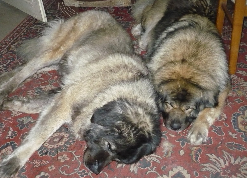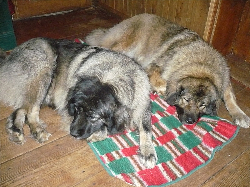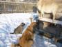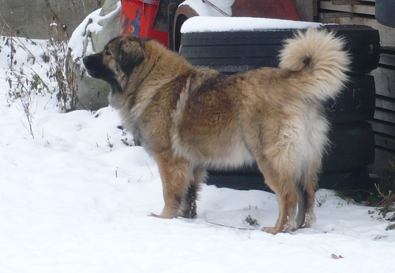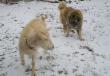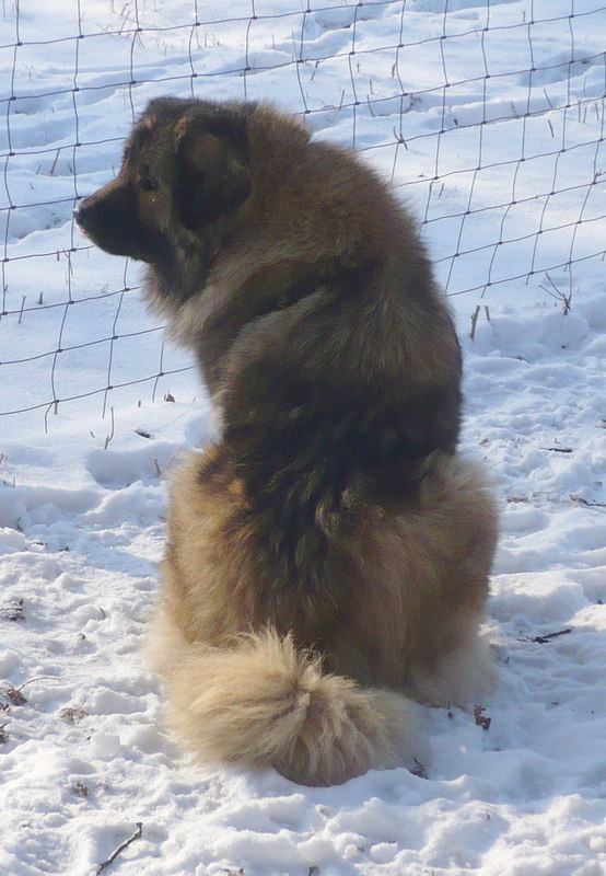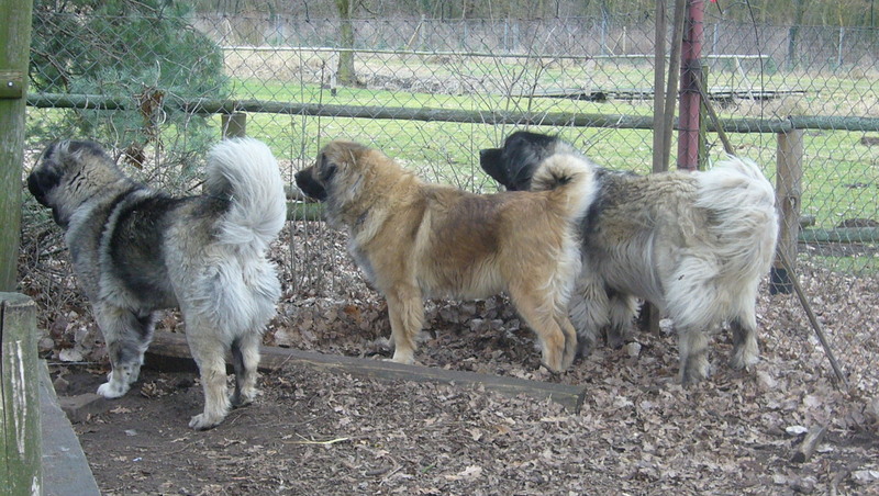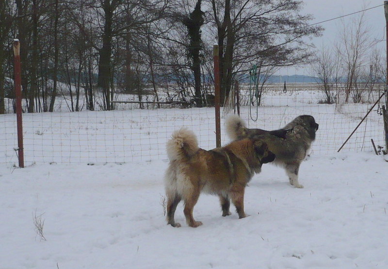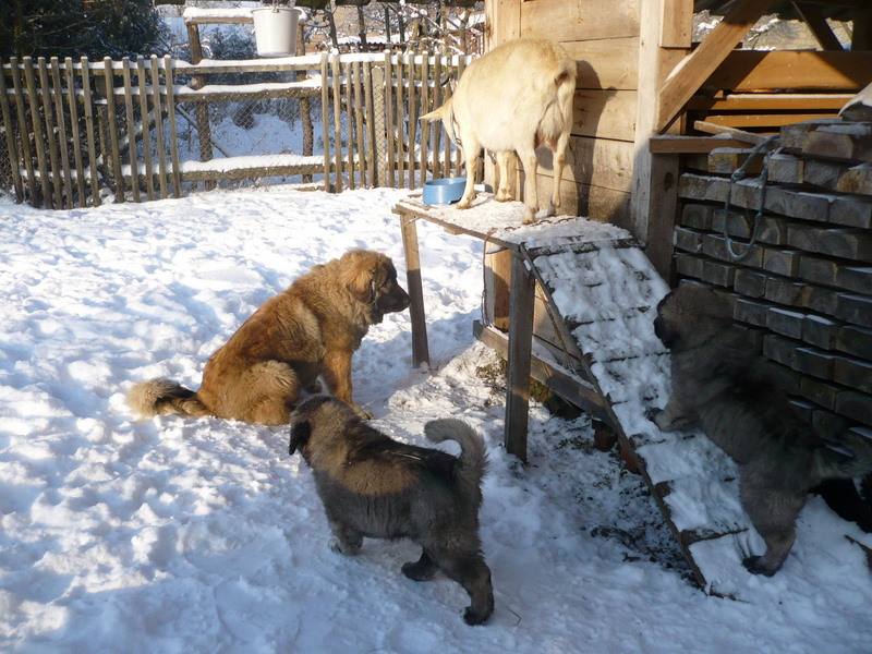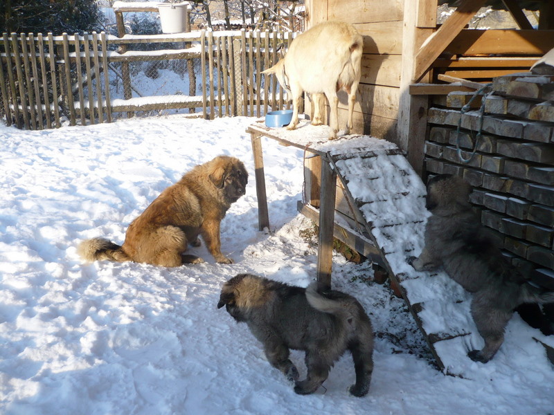 Im Januar 2016 Nana noch ganz abgehaart nach ihren Wurf. Hier zusammen zu sehen mit Mama Helena und Ovzara mit deren Welpen vom W-Wurf. Im letzten Bild wird Wache gehalten am Zaun mit Helena und Yurma.