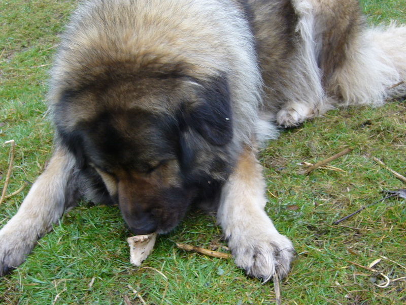 Mitte März 2015 - Nana beschäftigt sich genüsslich mit einen alten Knochen.