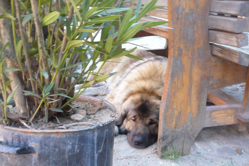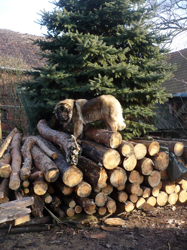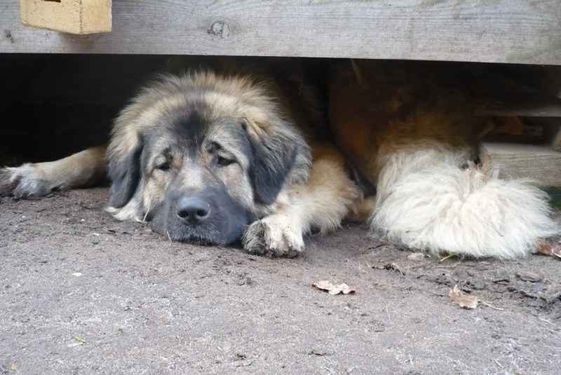 Nana im sonnigen November 2011. Oben auf dem ersten Bild liegt Nana unterm Holzstapel, sie hat darunter eine Kuhle gebuddelt für die letzten Welpen.
