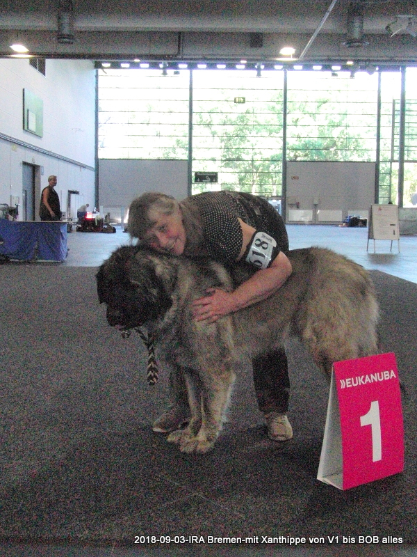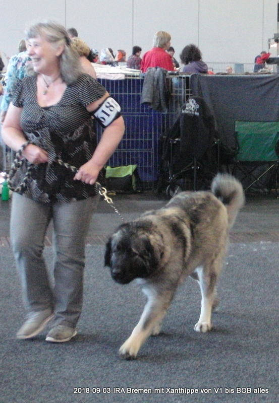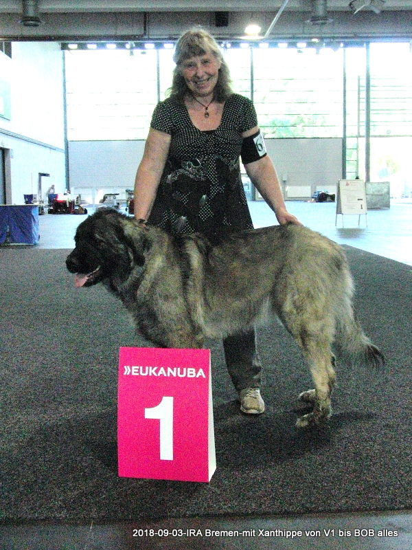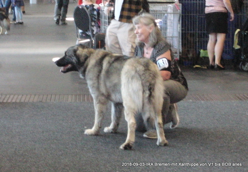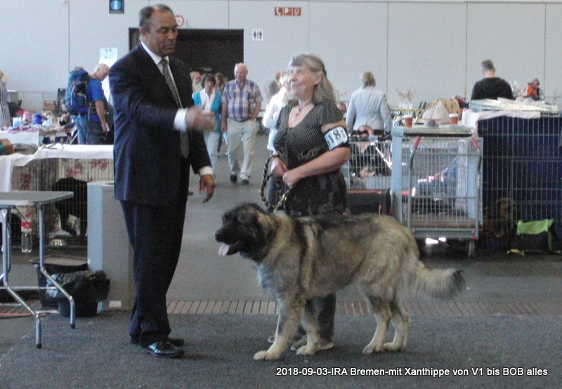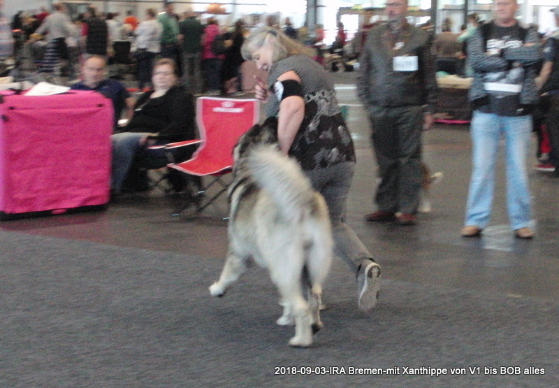 2. und 3.September 2018 Internationale Ausstellung in Bremen. Wir fahren mit der Deutschen Bahn, müssen 3x umsteigen, Xanthippe hat alles super mitgemacht. Ergebnis: 2x V1; 2x BOB; 2x DChVDH; 2x CAC und 1x CACIB; Xanthippe erhielt die letzten beiden Anwartschaften zum Deutschen Champion VDH , obwohl sie im Sommerkleidchen kam.