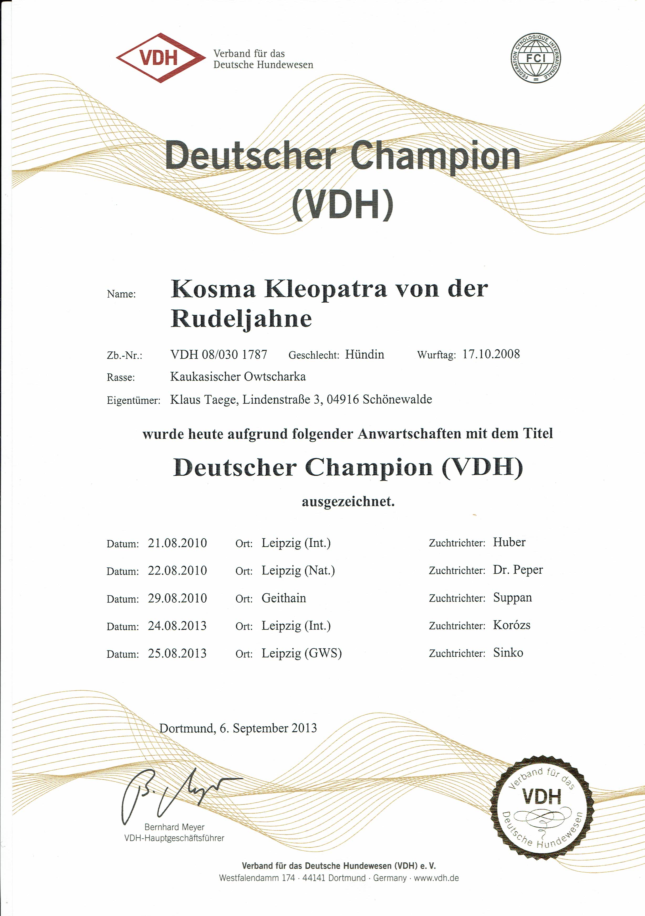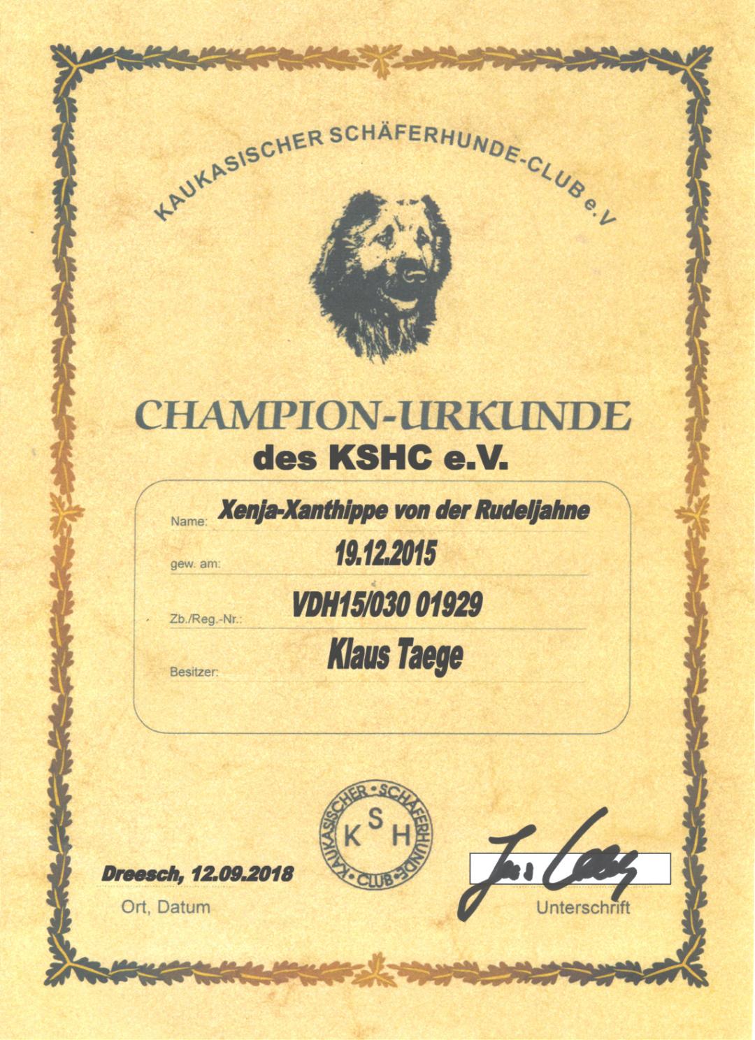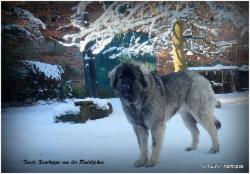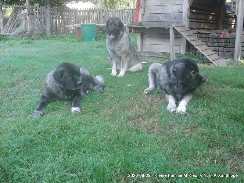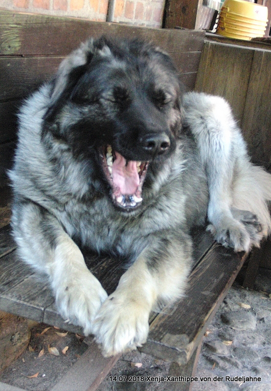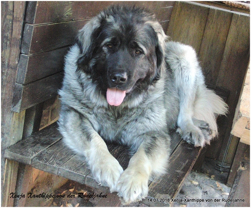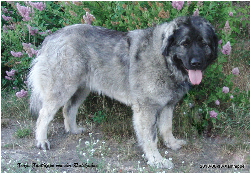Xenja hat sich prächtig entwickelt, top Körperbau, sehr gute Bewegung, geröntgt wurde sie auf HD-B2, Ausstellungsergebnisse sind hervorragend. Sie ist bereits in jungen Jahren, noch keine 3Jahre, KSHC-ClubChampion und Champion des VDH. All dessen vor Augen liesen wir Xenja im Juni 2017 zur Zucht zu. Ihr erster Wurf fiel am 4.7. 2021, unser F2-Wurf, Vater ist Frez Flex Kaukazu. Es war eine schwere Geburt, leider lebte nur 1 Welpe, unser Frez Flex Fridolin, eine Schönheit von Hund. Xanthippe überraschte uns noch einmal mit einen sehr großen Wurf am 22.11.2022, unseren G2-Wurf. Vater ist unser alter Rüde Dombay Ulgen Dugur Luchat. Wir freuen uns über 7/6 prächtige Welpen.