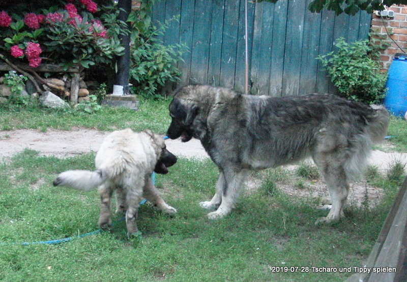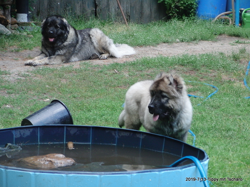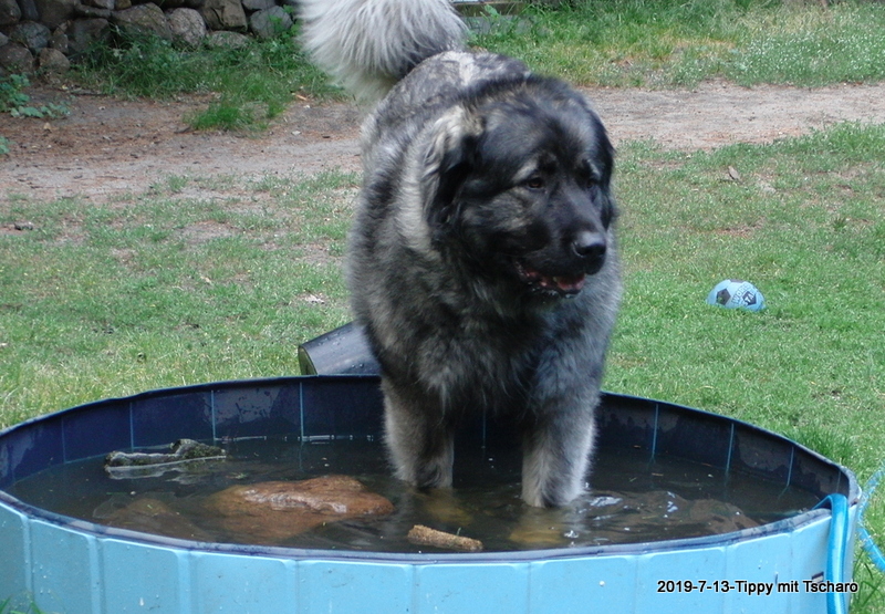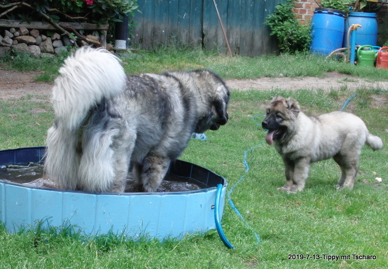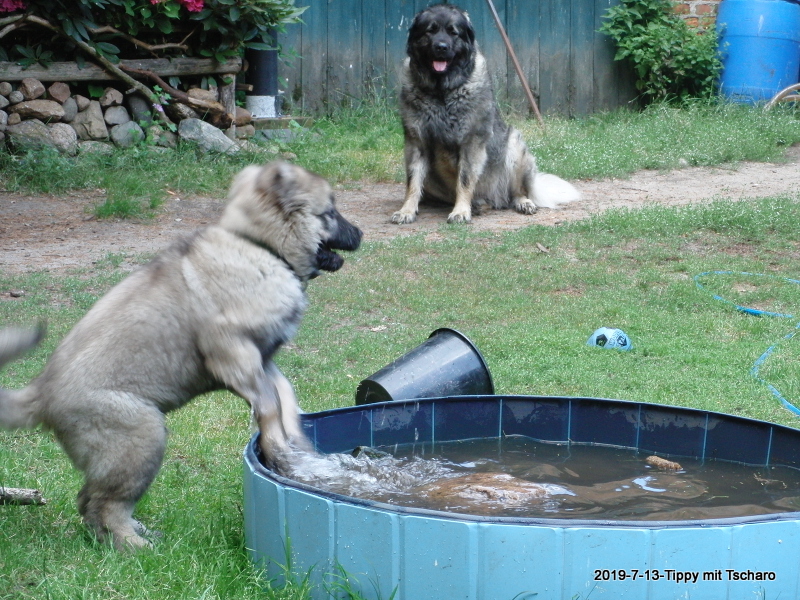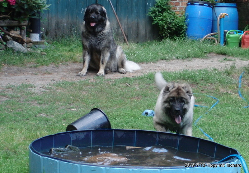 13.7.2019 - Xanthippe hat einen kleinen Freund, den Tscharo aus Moskau. Tscharodej ist offensichtlich genauso eine Wassermaus wie sie. :-)