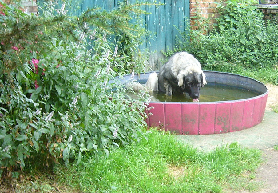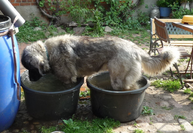 5.Juni 2017 - Xanthippe braucht 2 Bottiche zum Füße kühlen :-)