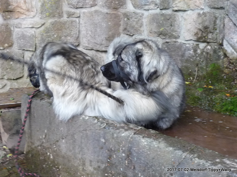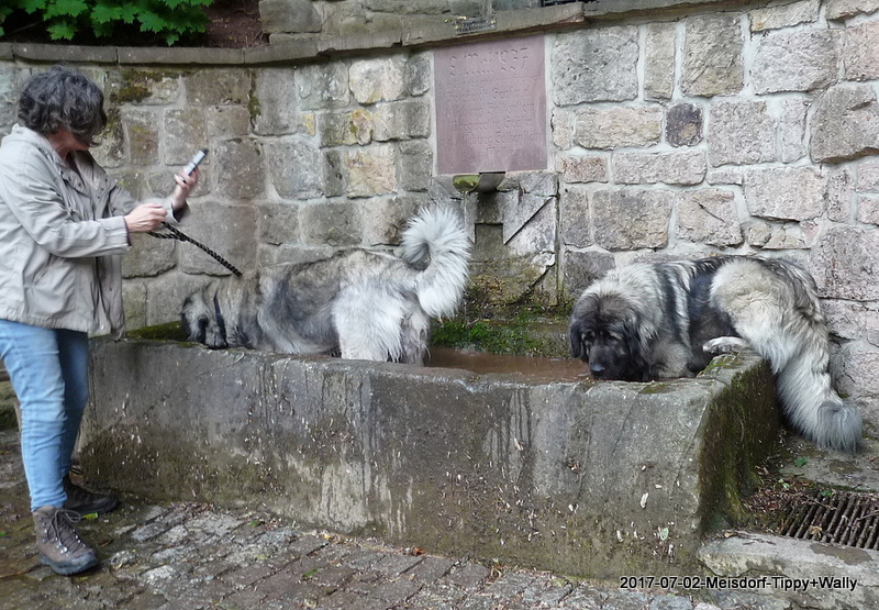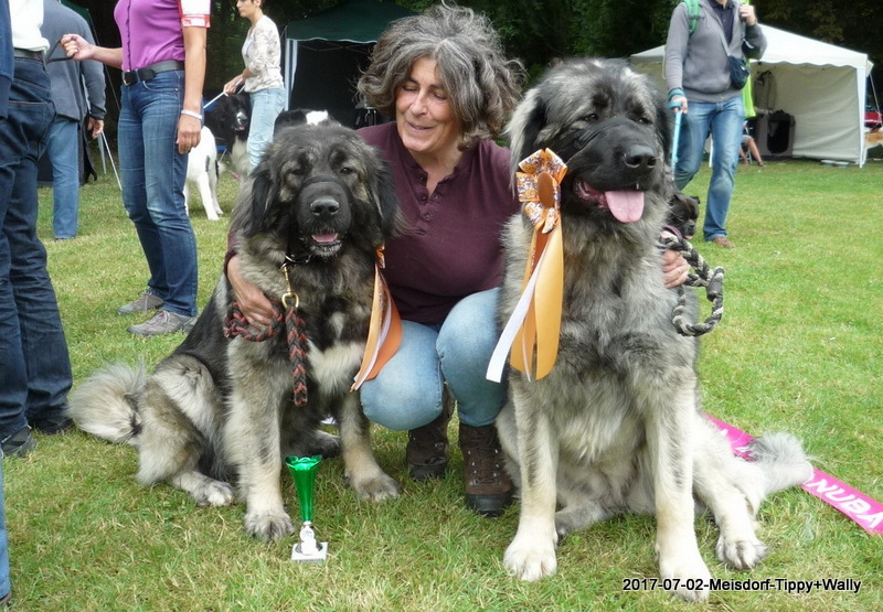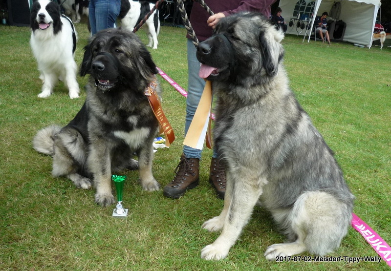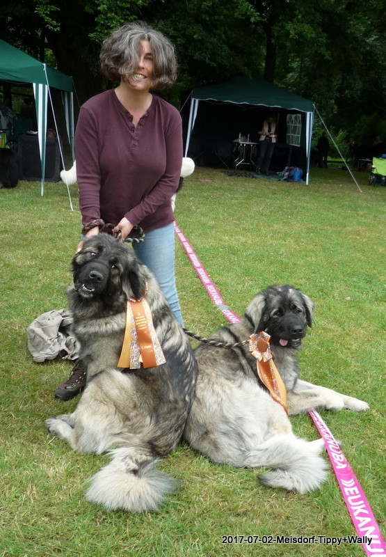 Am 2.7.2017 waren wir mit Xanthippe und Wally zur Ausstellung in Meisdorf. Beide erhielten in ihrer Klasse, mit ca. ein und einen halben Jahr, ein V1 mit Anwartschaft zum DCh.-VDH, Xanthippe erhielt zusätzlich das CAC und das BOB - Bester der Rasse - danach durfte sich abgekühlt werden im Quellbrunnen, das war das Beste! :-)