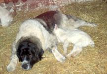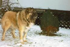 Am 16.5.06 haben wir unser Edinchen begraben. Sie ist die Stammmutter der Kaukasenzucht im Zwinger von der Rudeljahne. Edina hat uns 2 Würfe, den B-, und den D- Wurf gebracht. Auf je eine Hündin aus diesen Würfen haben wir unsere Zucht erfolgreich weiter aufbauen können. Sie war eine sehr stolze, würdevolle, ausgeglichene, aber auch oft sehr energische und vom Wesen her eine urtypische Hirtenhündin. Sie brauchte nur 2-3 mal zu bellen, mit ihrer sehr tiefen, lauten Stimme hatte sie alles im Griff, und gern Leute erschreckt. Schon mit 1,5 Jahren hat sie die Chefrolle hier auf dem Hof übernommen und behalten bis zum 2.Wurf der Tochter aus ihrem ersten Wurf. Diese - die Baba Jaga - hat dann ihren Platz eingenommen. Edina ist aber weiterhin geachtete Senjorchefin geblieben - bis zum Schluss.