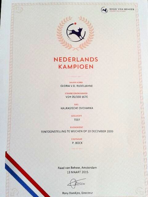 Wir gratulieren unserer Ursa-Unsha-Ustinya von der Rudeljahne zum Erreichen des Titels CHAMPION DER NEDERLANDE gleichzeitig erhält Ustinya damit die Zuchtzulassung. Wir freuen uns sehr liebe Jeannette! Weiter viel Erfolg!